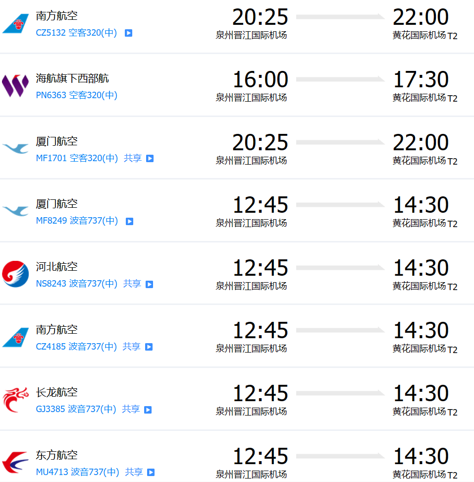 ?泉州晉江國際機場有直飛長沙黃花機場的航班,具體參考如下: